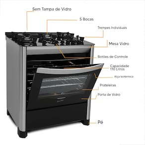 Equipado com queimadores de tecnologia italiana, oferece excelente desempenho no preparo das receitas, garantindo mais agilidade e eficiência. Seu forno amplo de 110 litros é perfeito para preparar desde refeições simples até grandes assados, com distribuição uniforme de calor e economia de energia.