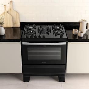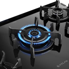 Apresentando o Fogão 5 Bocas Preto com Mesa de Vidro Atlas Agile Up, a revolução que sua cozinha aguardava, trazendo um novo design e a qualidade de sempre. A resistente mesa de vidro e o elegante puxador de alumínio conferem sofisticação. Os pés altos e sólidos garantem estabilidade e facilidade na limpeza. O amplo visor do forno proporciona visibilidade clara dos pratos em preparo. As grades de ferro fundido unem estilo e durabilidade, sustentando panelas de diversos tamanhos. Com queimadores forjados, o Agile Up oferece desempenho superior e calor uniforme. A versão com 5 queimadores inclui um Tripla Chama para preparo rápido.