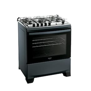O **puxador em alumínio escovado**, além de ergonômico, traz sofisticação ao design do fogão. Com **duas prateleiras deslizantes:** a inferior facilita a retirada dos alimentos, enquanto a superior, com altura ajustável, se adapta às necessidades de cada preparo. O **visor amplo** do forno permite acompanhar o preparo sem precisar abrir a porta e o acabamento **Limpa Fácil** deixa a limpeza ainda mais rápida e descomplicada.