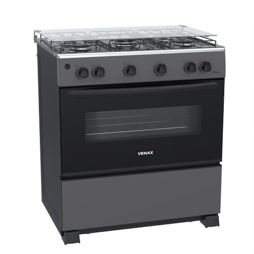 Tipo: Fogão de Piso Acendimento: Automático Queimadores: 3 Grandes e 2 Médios Trempe dos Queimadores: Esmaltadas Mesa Queimadores: Inox Tampa de Vidro: Sim Botões: Removíveis Válvula de Segurança: Sim Luz no Forno: Não Prateleiras no Forno: Uma Fixa Revestimento Forno: Esmalte Easy Clean Temperatura: 5 Posições de 180C até 290C Função Grill: Não Timer Grill: Não Timer Gás: Não Espeto Giratório: Não Bandeja Coletora de Resíduos: Não Porta Removível: Sim Porta do Forno: Vidro Panorâmico Vidro Duplo na Porta: Sim Puxador da Porta: Aço Pintado na Cor do Produto Estufa: Fixa Puxador da Estufa: N/A Entrada de Gás: Uma entrada (lado esquerdo visto de frente) Marca: Venax