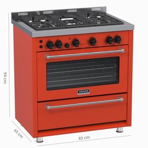 Características: Fogão de Piso 5 Bocas Têmis, com Acendimento Automático Total, Com Estufa, Visor na Porta do Forno, Tripla Chama Central, Trempes Duplas de Ferro Fundidos, Mesa de Inox, Luz no Forno, Puxador na Porta do Forno e Estufa em Aço Cromado, Portas Removíveis, Grill Dourador no Forno com Timer, Duas Grades Deslizantes no Forno, Bandeja Coletora de Gordura no Forno, Dois Espetos Giratórios, Forno Easy Clean.