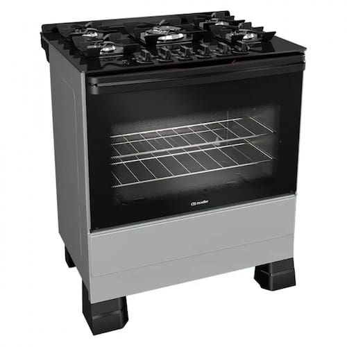 Cozinhar a vontade, ter facilidade na limpeza e ainda deixar sua cozinha muito mais moderna é aqui! O Fogão Mueller MFV5BF, possui 5 bocas com acendimento automático. São 2 queimadores família, 1 queimador tripla chama e outros 2 queimadores médios. A mesa de vidro temperado é pura elegância com grades de ferro fundido e botões removíveis.