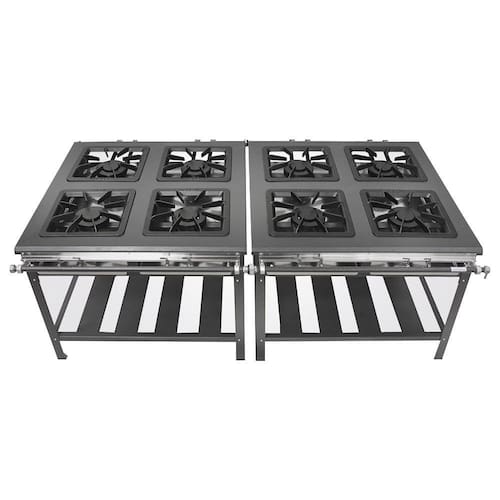 O Fogão Industrial 8 Bocas Extra é fabricado para atender grandes restaurantes e cozinhas industriais, os mesmos tem uma estrutura robusta e uma distância maior entre as grelhas para suportar panelas de porte grande.