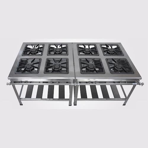 O Fogão Industrial 8 Bocas Extra é fabricado para atender grandes restaurantes e cozinhas industriais, os mesmos tem uma estrutura robusta e uma distância maior entre as grelhas para suportar panelas de porte grande.