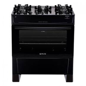 O forno possui visor amplo, que permite enxergar tudo o que está dentro, capacidade de 86,5 litros, acabamento limpa fácil, 1 grade deslizante com 2 regulagens de altura e porta com vidro duplo - que preserva o calor.
