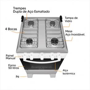 Fogão à Gás Atlas Coliseum Plus 4 Bocas: Potência e Eficiência para Sua Cozinha O Fogão à Gás 4 Bocas com Mesa Inox é uma combinação perfeita entre design, eficiência e praticidade, oferecendo tudo o que você precisa para preparar suas receitas favoritas com mais agilidade e precisão.