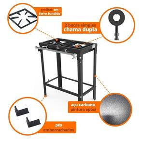 Fogão a Gás Baixa Pressão Com Pés em Aço Carbono Com 2 Queimadores Simples Pms-200 - Progás