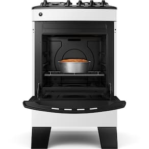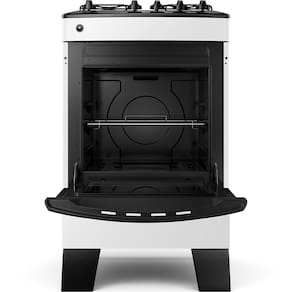 Com forno de 58 Litros o maior do segmento voce tem mais espaco para preparar receitas, alem de ter chamas bem distribuidas que garantem assados mais uniformes.