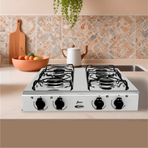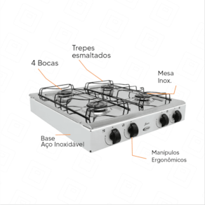 4 Bocas: Com quatro queimadores estampados, você pode cozinhar diversas receitas ao mesmo tempo, otimizando seu tempo na cozinha.