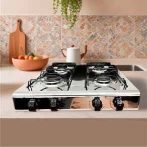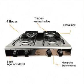 4 Bocas: Com quatro queimadores estampados, você pode cozinhar diversas receitas ao mesmo tempo, otimizando seu tempo na cozinha.