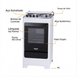 Equipado com 4 bocas de diferentes tamanhos, ele fornece detalhes no preparo dos alimentos, garantindo que suas refeições saiam no ponto ideal.