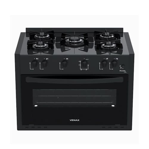 Fogão de Embutir Venax Picasso Line 5 Bocas – Mesa de Vidro Preto, Acendimento Automático e Forno Easy Clean 88,3L