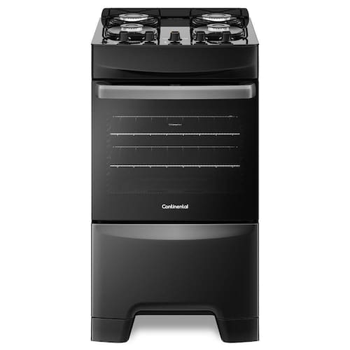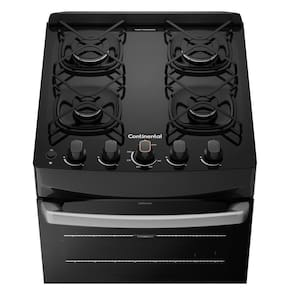 Características Gerais: Marca: Continental Modelo: FC4GP Tipo: A gás Tipo de fogão: Piso Tipo de gás: GLP -conversível para GN- Bocas: 04 Acendimento: Automático Potência da lâmpada: 40 watts Mesa: De vidro temperado Botões: Removíveis Grill: Não Forno Easy Clean: Sim Temperatura máxima do forno: 280 Graus C Temperatura mínima do forno: 160 Graus C Puxadores: Alumínio Pés: Niveladores Timer: Não Prateleiras: 1 deslizante manual e 1 auto deslizante Vidro interno: Removível Função relógio: Não Classificação Energética: A O produto sai de fábrica regulado para funcionar com Gás Liquefeito de Petróleo -GLP-. Para usar o produto com Gás Natural -GN-, chame o Serviço Autorizado.