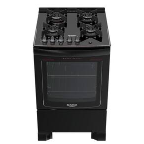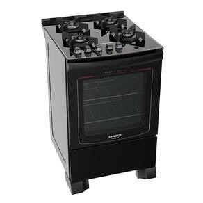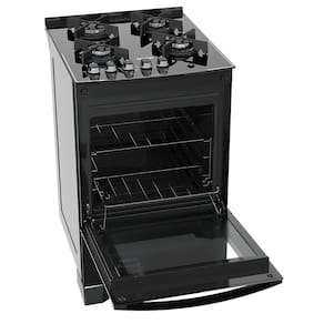 Características do produto: Modelo: Glass Tipo de fogão: Piso Tipo de gás: GLP (conversível para GN) Bocas: 04 Acendimento: Automático Queimadores: 3 ramal e 1 mega chama Potência dos queimadores: Ramal: 1700 watts; Mega chama: 3000 Watts Iluminação interna: Sim Mesa: De vidro temperado Trempes: Ferro fundido Forno: Com acabamento Limpa Fácil Porta do forno: Com duplo vidro Luz no forno: Sim Lâmpada do forno: Acompanha o produto Capacidade do forno: 82,5 litros Puxadores: Alumínio escovado Altura dos pés: 7 cm Grade: 2 deslizantes