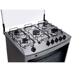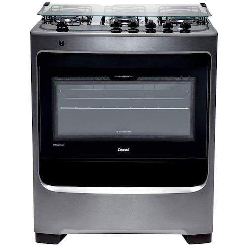 O Fogão a Gás CFS5NAR da Consul têm 3 queimadores semirrápidos, 2 queimadores rápidos e possui forno com capacidade de 96 litros, com tecnologia Limpa + Fácil, que une a cavidade Cleartec e o vidro interno vedado. Além disso, conta com acendimento automático; tem design frontal em peça única, que facilita a limpeza; grades duplas esmaltadas, que aumentam a segurança e manípulos removíveis.