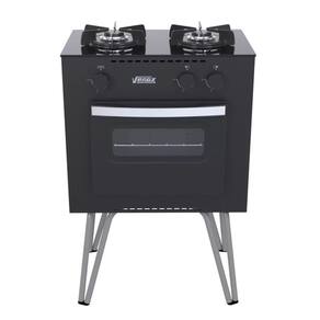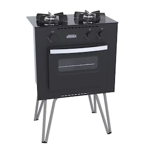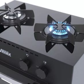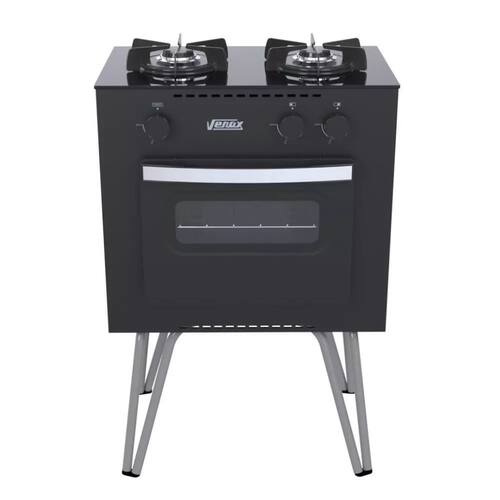Fogão portátil de 2 bocas Venax Mini Cook, mesa de vidro, trempes individuais esmaltadas, forno Easy Clean, gás GLP baixa pressão.Tipo