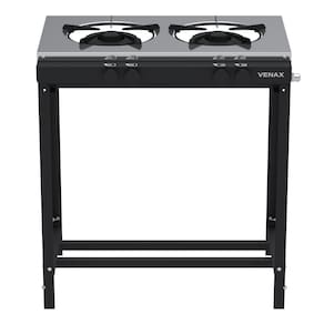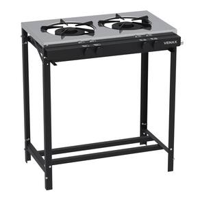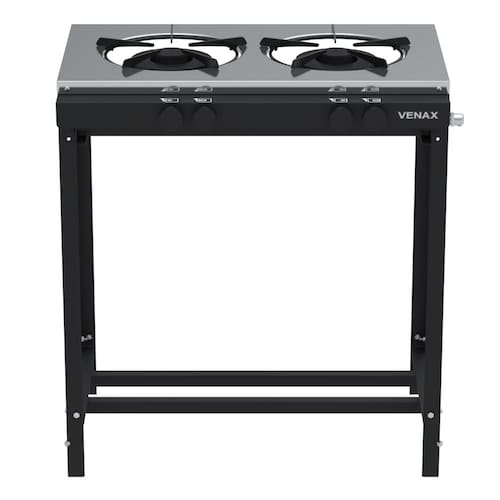 Tipo: Fogão industrial Marca: Venax Acendimento: Manual Queimadores: 1 Queimador duplo(150mm) e 1 queimador simples(120mm) Espalha chama: Ferro fundido Trempe dos queimadores: Esmaltadas Mesa dos queimadores: Inox Bandeja coletora de resíduos: Sim Botões: Removíveis Estrutura do fogão: Aço revestido com pintura eletrostática Forno: Não Entrada de gás: Uma entrada, lado direito visto de frente Medidas do produto: Altura 84,5cm - Largura 77cm - Profundidade 49,5cm