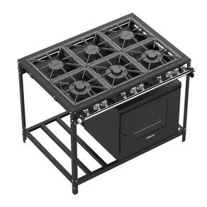 Tipo: Fogão industrial Marca: Venax Acendimento: Manual Queimadores: 3 Queimadores duplos(150mm) e 3 queimadores simples(120mm) Espalha chama: Ferro fundido Trempe dos queimadores: Ferro fundido(300x300mm) Mesa dos queimadores: Aço revestido com pintura eletrostática Perfil da mesa: Estilo "U" (60mm) Bandeja coletora de resíduos: Sim Botões: Metálicos Forno: Sim Prateleira do forno: 1 Regulável Revestimento do forno: Esmalte limpa fácil Isolamento do forno: Lã de vidro Termômetro no forno: Não Porta do forno: Aço com visor de vidro Puxador da Porta: Aço com baquelite Estrutura do fogão: Aço revestido com pintura eletrostática Entrada de gás: Dupla(reversível) Medidas do produto: Altura 84cm - Largura 107cm - Profundidade 84cm