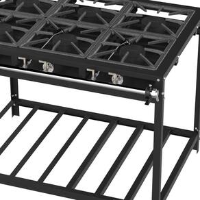 Tipo: Fogão industrial Marca: Venax Acendimento: Manual Queimadores: 6 Queimadores simples(120mm) Espalha chama: Ferro fundido Trempe dos queimadores: Ferro fundido(300x300mm) Mesa dos queimadores: Aço revestido com pintura eletrostática Perfil da mesa: Estilo "U" (60mm) Bandeja coletora de resíduos: Sim Botões: Metálicos Forno: Não Estrutura do fogão: Aço revestido com pintura eletrostática Entrada de gás: Dupla(reversível) Medidas do produto: Altura 84cm - Largura 107cm - Profundidade 84cm