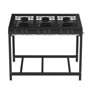 Tipo: Fogão industrial Marca: Venax Acendimento: Manual Queimadores: 3 Queimadores duplos(150mm) e 3 queimadores simples(120mm) Espalha chama: Ferro fundido Trempe dos queimadores: Esmaltadas Mesa dos queimadores: Aço revestido com pintura eletrostática Perfil da mesa: Estilo "U" (60mm) Bandeja coletora de resíduos: Sim Botões: Removíveis Forno: Não Estrutura do fogão: Aço revestido com pintura eletrostática Entrada de gás: Uma entrada, lado direito visto de frente Medidas do produto: Altura 84,5cm - Largura 109,5cm - Profundidade 82cm