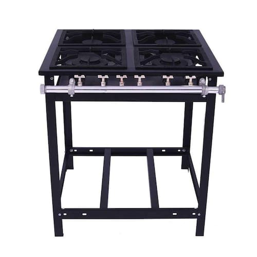 - Gás GLP baixa pressão; - Corpo e mesa de aço carbono super resistente com acabamento em pintura a pó eletrostática com base fosfatizada, grelha em ferro fundido de 30x30cm e mesa com perfil de 5cm; - Tubo distribuidor (varão) de 3/4" com acabamento cromado, possuindo tampão e entrada de gás reversível; - Entrada de gás localizada no lado direito do tubo distribuidor visualizando o produto de frente, sendo possível reverter a entrada para o lado esquerdo, se necessário; - Registro cromado de 1/4", sendo um para cada queimador simples e dois para cada queimador duplo; - Pés, paneleiro e acessórios desmontáveis para facilitar transporte e armazenamento; - Produzido com tampão no tubo distribuidor para, se houver necessidade, instalar registro para forno; - Grelhas e queimadores em ferro fundido, queimadores simples traseiros com 100mm de diâmetro e duplos frontais de 160mm; - Queimadores com encaixe, sendo de fácil remoção para realizar limpeza e manutenção; - Fácil regulagem de entrada de oxigênio; - Equipamento para uso industrial e profissional. **PRODUTO DESMONTADO.
