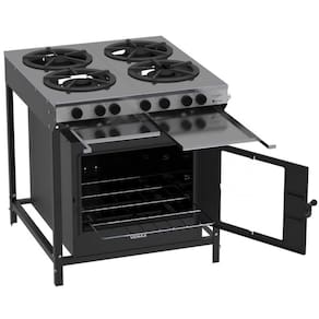 - Tipo: Fogão Industrial FFI 430-2 GOURMET; - Alimentação: Gás GLP Baixa Pressão; - Manipulos: Removíveis; - Painel: Aço Inox.; - Acendimento: Manual; - Entrada de Gás: Uma entrada (lado direito visto de frente); - Material das Trempes: Ferro Fundido; - Material dos Queimadores e Espalha Chapa: Ferro Fundido, pintados em preto; - Estrutura do Fogão: Aço Revestido com Pintura Eletrostática; - Material da Mesa: Aço Inox; - Bandeja Coletora de Resíduos: Sim; - Material da Corpo: Aço Revestido com Pintura Eletrostática na Cor Preta; - Forno: Sim; - Prateleira no Forno: Uma Prateleira Regulável; - Revestimento Interno do Forno: Easy Clean; - Isolamento do Forno: Lã de Vidro; - Termômetro do Forno: Não; - Porta do Forno: Aço com Visor; - Tipo de montagem: De piso; - Puxador da Porta: Aço com sistema de Tranca; - Garantia: 1 Ano Contra Defeito de Fabricação.