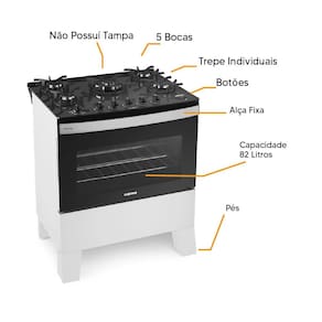 Fogão Itatiaia Electra Glass Plus 5 Bocas com Mesa de Vidro