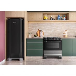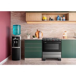 O modelo conta com acendimento automático, tornando o uso mais prático no dia a dia. O forno com 84 litros de capacidade, porta em vidro total, vidro interno removível e prateleira ajustável oferece mais espaço e versatilidade no preparo de receitas para toda a família.