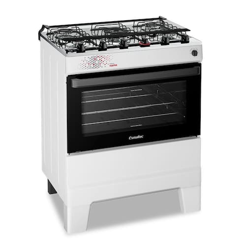 Com acendimento automático, o uso é prático e . Os queimadores bem distribuídos (3 família, 1 grande e 1 pequeno) oferecem flexibilidade para diferentes tipos de preparo, enquanto as trempes duplas em aço esmaltado garantem firmeza e durabilidade.