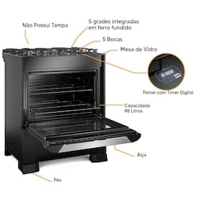 Além disso, o forno espaçoso com prateleira ajustável permite assar diversos pratos simultaneamente, tornando suas refeições ainda mais práticas e saborosas.