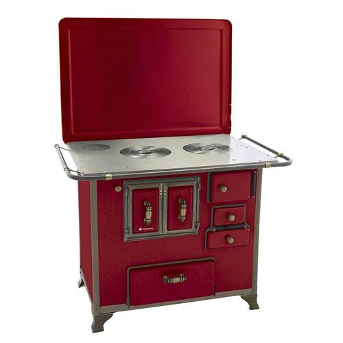 O Fogão a Lenha Barroco Número 03 de Gabinete conta com corpo e forno totalmente em aço carbono com acabamento esmaltado a fogo na pintura vermelha. Seus pés são em ferro fundido com acabamento em ouro envelhecido no modelo rústico, conta também com varões em tudo de aço e guarnições em ferro fundido também com acabamento em ouro envelhecido garantindo qualidade exclusiva e um ótimo acabamento no seu Fogão a Lenha.