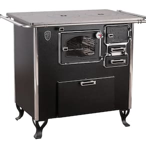 Forno: Aço inox | Tinta acabamento: Tinta alta temperatura 250C nas portas, parte de trás e pés; | isolamento térmico: Frente e laterais revestidas com isolamento térmico | Ferro fundido: Nas portas do fogo, forno e pés | Cor: Preto | Fabricante: Formos Pinhal | É kit: Não | Voltagem: Sem voltagem | Selecione: 0 | Peso do Produto: 98 | Produto: Fogão a Lenha | Altura: 87 | Largura: 104