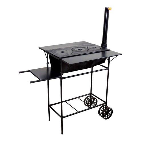 O fogão a lenha portátil deixou de ser um item que confere apenas um sabor diferenciado às comidas. Esse modelo também confere às famílias as mais variadas vantagens, como garantir maior economia de energia elétrica e gás de cozinha, diminuir a poluição, além de decorar os espaços com muito mais charme. É ideal para assar frango, carnes, aves e peixes. Projetada para ambientes externos e internos como quintais, camping, áreas de piscina, praias, varandas entre outros. Saída de fumaça embutida e removível. Possui bandejas nas laterais para facilitar as atividades. Leve, prático para transportar, guardar e limpar. Carrinho com rodas para facilitar o transporte.