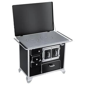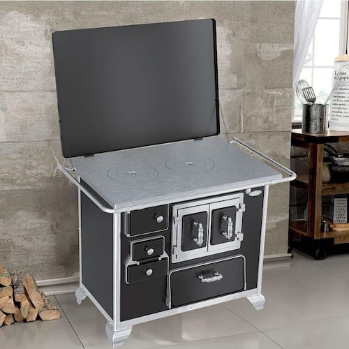 Fogão a lenha com gabinete N2, ferro fundido, porta dupla, forno esmaltado de 31L, compartimento para guardar objetos, sistema de circulação de calor.Tipo