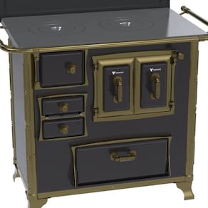 Tipo: Fogão a Lenha Chapa: Ferro Fundido Polido Varão de proteção: Tubo de Aço com Acabamento em Ouro Envelhecido* Suporte Varão de proteção: Modelo Séc. XVIII com Acabamento em Ouro Envelhecido* Caldeira: Não Fornalha: Tijolos Pré-Moldados Porta da Fornalha: Aço Esmaltado Tranca na Porta da Fornalha: Não Porta de Ar: Aço Esmaltado Gaveta de Cinzas: Sim Porta de Gaveta de Cinzas: Aço Esmaltado Forno: Sim Porta do Forno: Aço Esmaltado com Moldura em Alumínio e Acabamento Ouro Envelhecido* Prateleira do Forno: 1 Regulável Estufa: Sim Porta da Estufa: Aço Esmaltado Base Armazenamento de Lenha: Não Cantoneiras: Ouro Envelhecido* Guarnições das Portas: Design Séc. XVIII, Acabamento Ouro Envelhecido* Puxadores: Design Séc. XVIII, Acabamento Ouro Envelhecido* Tampa: Sim Pés: Ouro Envelhecido* Acessórios: Pá e Gancho para Manuseio do Produto Saída da Chaminé: Saida a Direita ou Saída a Esquerda, na chapa e Costas(visto de frente) (selecione na hora da compra) Revestimento Corpo do Produto: Esmalte Serigrafia: Não Serpentina: Não Marca: Venax
