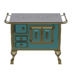 - Porta do Forno: Aço Esmaltado com Moldura em Alumínio e Acabamento Ouro Envelhecido*;
