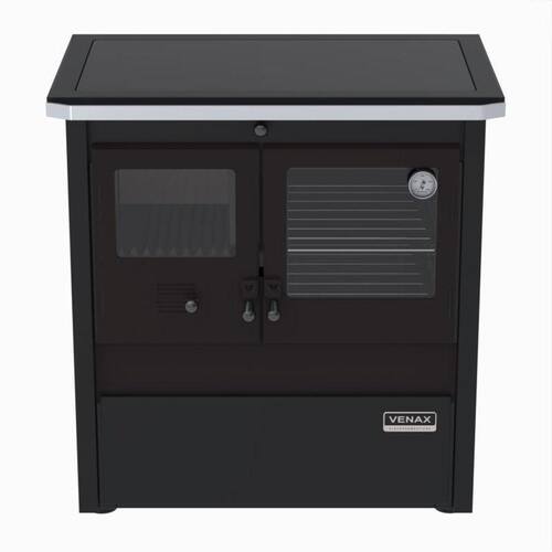 Tipo: Fogão a lenha Chapa: Vidro Vitrocerâmico com moldura Pintada Dupla Combustão: Sim Varão de proteção: Frontal de alumínio escovado Suporte do varão de proteção: Aço 3mm pintado em preto Fornalha: Tijolos refratários pré-moldados Porta da fornalha: Vidro Vitrocerâmico Tranca da porta da fornalha: Sim Porta do ar: Esmaltada Gaveta de cinzas: esmaltada Forno: Sim Porta do forno: Vidro Vitrocerâmico Prateleiras do forno: 2 removíveis Guarnições das portas: Chapa de aço Puxadores: Baquelite na cor preta Pés: 4 pés reguláveis Acessórios: Pé e gancho para manuseio Saída da chaminé: Central traseira Revestimento corpo do produto: Pintura eletrostática Termômetro no forno: Sim