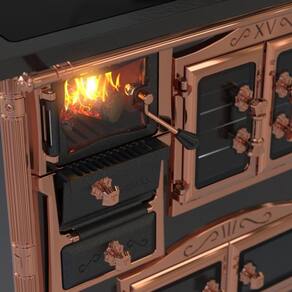 Tipo: Fogão a Lenha Chapa: Vidro Vitrocerâmico com moldura esmaltada Caldeira: Não Fornalha: Tijolos Pré-Moldados Porta da Fornalha: Vidro Vitrocerâmico com Moldura em Ferro Fundido Pintado Tranca na Porta da Fornalha: Sim Porta de Ar: Ferro Fundido Pintado Gaveta de Cinzas: Sim Porta de Gaveta de Cinzas: Ferro Fundido Pintado Forno: Sim Porta do Forno: Dupla com Vidro Vitrocerâmico e Moldura com Acabamento em Rose Gold Prateleira do Forno: 1 Regulável Estufa: Sim Porta da Estufa: Dupla com Vidro Vitrocerâmico e Moldura com Acabamento em Rose Gold Base Armazenamento de Lenha: Não Cantoneiras: Ferro Fundido com Acabamento em Rose Gold Guarnições da Porta: Design Séc. XV acabamento em Rose Gold Puxadores: Design Séc. XV acabamento em Rose Gold Tampa: Não Pés: Design Séc. XV acabamento em Rose Gold Acessórios: Pá e Gancho para Manuseio Saída da Chaminé: Saida a Direita ou Esquerda, nas Costas(visto de frente) (selecione na hora da compra) Revestimento Corpo do Produto: Esmalte Serigrafia: Não Serpentina: Não Marca: Venax
