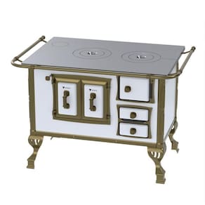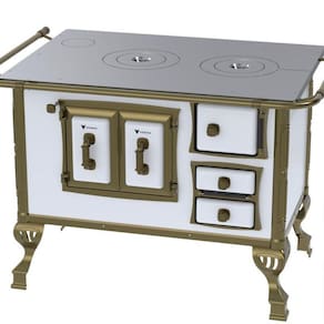 Tipo: Fogão a Lenha Chapa: Ferro Fundido Polido Varão de proteção: Tubo de Aço com Acabamento em Ouro Envelhecido* Suporte Varão de proteção: Modelo Séc. XVIII com Acabamento em Ouro Envelhecido* Caldeira: Não Fornalha: Tijolos Pré-Moldados Porta da Fornalha: Aço Esmaltado Tranca na Porta da Fornalha: Não Porta de Ar: Aço Esmaltado Gaveta de Cinzas: Sim Porta de Gaveta de Cinzas: Aço Esmaltado Forno: Sim Porta do Forno:Aço Esmaltado com Moldura em Alumínio e Acabamento Ouro Envelhecido* Prateleira do Forno: 1 Regulável Estufa: Não Base Armazenamento de Lenha: Não Cantoneiras: Ouro Envelhecido* Guarnições da Porta: Design Séc. XVIII, Acabamento Ouro Envelhecido* Puxadores: Design Séc. XVIII, Acabamento Ouro Envelhecido* Tampa: Não Pés: Ouro Envelhecido* Acessórios: Pá e Gancho para Manuseio Saída da Chaminé: Saída a Direita ou Saída a Esquerda, na chapa e costas(Visto de Frente) (selecione na hora da compra) Revestimento Corpo do Produto: Esmalte Serigrafia: Não Serpentina: Não Marca: Venax *Acabamento em "Ouro Envelhecido" podem ter diferença de tonalidade;