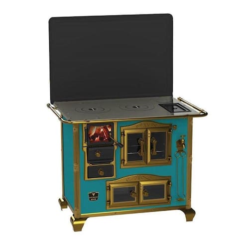 Tipo: Fogão a Lenha Chapa: Ferro Fundido Polido Varão de proteção: Tubo de Aço com Acabamento em Ouro Envelhecido* Suporte Varão de proteção: Modelo Séc. XV acabamento Ouro Envelhecido* Caldeira: Sim Fornalha: Tijolos Pré-Moldados Porta da Fornalha: Vidro Vitrocerâmico com Moldura em Ouro Envelhecido* Tranca na Porta da Fornalha: Sim Porta de Ar: Ferro Fundido Pintado Gaveta de Cinzas: Sim Porta de Gaveta de Cinzas: Ferro Fundido Pintado Forno: Sim Porta do Forno: Dupla com Vidro Vitrocerâmico e Acabamento da Moldura Ouro Envelhecido* Prateleira do Forno: 1 Regulável Estufa: Sim Porta da Estufa: Dupla com Vidro Vitrocerâmico e Moldura com Acabamento em Ouro Envelhecido Base Armazenamento de Lenha: Não Cantoneiras: Ferro Fundido com Acabamento Ouro Envelhecido* Guarnições da Porta: Design Séc. XV acabamento Ouro envelhecido* Puxadores: Design Séc. XV Acabamento Ouro Envelhecido* Tampa: Sim Pés: Design Séc. XV acabamento Ouro envelhecido* Acessórios: Pá e Gancho para Manuseio Saída da Chaminé: Saida a Direita ou Saída a Esquerda, na chapa e Costas(visto de frente) (selecione na hora da compra) Revestimento Corpo do Produto: Esmalte Serigrafia: Não Serpentina: Não Marca: Venax