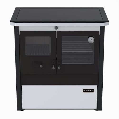 Tipo: Fogão a lenha Chapa: Vidro Vitrocerâmico com moldura Revistada na Cor Preta Dupla Combustão: Sim Varão de proteção: Frontal de alumínio escovado Suporte do varão de proteção: Aço 3mm pintado em preto Fornalha: Tijolos refratários pré-moldados Porta da fornalha: Vidro Vitrocerâmico Tranca da porta da fornalha: Sim Porta do ar: Esmaltada Gaveta de cinzas: esmaltada Estufa: Sim Forno: Sim Porta do forno: Vidro Vitrocerâmico Prateleiras do forno: 2 removíveis Guarnições das portas: Chapa de aço Puxadores: Baquelite na cor preta Pés: 4 pés reguláveis Acessórios: Pé e gancho para manuseio Saída da chaminé: Central traseira Revestimento corpo do produto: Pintura eletrostática Termômetro no forno: Sim