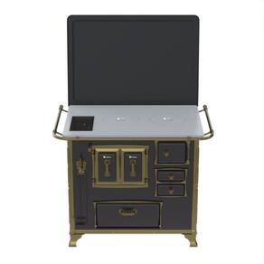 Tipo: Fogão a Lenha Chapa: Alumínio Polido Varão de proteção: Tubo de Aço com Acabamento em Ouro Envelhecido* Suporte Varão de proteção: Modelo Séc. XVIII com Acabamento em Ouro Envelhecido* Caldeira: Sim Fornalha: Tijolos Pré-Moldados Porta da Fornalha: Aço Esmaltado Tranca na Porta da Fornalha: Não Porta de Ar: Aço Esmaltado Gaveta de Cinzas: Sim Porta de Gaveta de Cinzas: Aço Esmaltado Forno: Sim Porta do Forno: Aço Esmaltado com Moldura em Alumínio e Acabamento Ouro Envelhecido* Prateleira do Forno: 1 Regulável Estufa: Sim Porta da Estufa: Aço Esmaltado Base Armazenamento de Lenha: Não Cantoneiras: Ouro Envelhecido* Guarnições da Porta: Design Séc. XVIII, Acabamento Ouro Envelhecido* Puxadores: Design Séc. XVIII, Acabamento Ouro Envelhecido* Tampa: Sim Pés: Ouro Envelhecido* Acessórios: Pá e Gancho para Manuseio do Produto Saída da Chaminé: Saida a Direita ou Saída a Esquerda, na chapa e Costas(visto de frente) (selecione na hora da compra) Revestimento Corpo do Produto: Esmalte Serigrafia: Não Serpentina: Não Marca: Venax