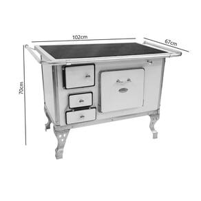 O Fogão A Lenha de N2 Vitrocerâmico na Cor Branca é um aparelho tradicionalmente utilizado para cozinhar alimentos através da queima de lenha. Ele é construído com ferro fundido, um material resistente e durável, que retém o calor de maneira eficiente. O fogão possui o número 2, indicando seu tamanho e capacidade. Ele é projetado para uso doméstico e possui uma câmara de combustão na qual a lenha é colocada para gerar calor. O calor é então transferido para as áreas de cocção, como as bocas e o forno, através de dutos e chaminés internas. Além disso, é fácil de limpar e oferece resistência a altas temperaturas.