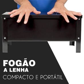 Em qualquer lugar, da pra cozinhar o fogão esmaltado portátil além de ser uma grande utilidade, agora você pode leva-lo para qualquer lugar com um melhor autonomia de transporte.Descrição do produto:O fogão a lenha alternativo fogo nosso é um produto desmontável, pratico e compacto.Com estrutura de aço carbono e revestimento em vitrocerâmica, oferece excepcional resistência a altas temperaturas.--------------------------------------Após cada uso, lave toda a superfície em agua corrente, com o auxílio de uma esponja e detergente neutro, enxaguar e depois seque com um pano.Para garantir a conservação e durabilidade do fogão, guarde em local seco e coberto.Especificações:Material: aço carbono revestido em vitrocerâmicaCor: pretaComprimento: 50 cmLargura: 21 cmAltura: 24 cmPeso: 2,8kgTamanho da embalagem do produto: 50 x 5 x 23cmInstruções de montagem na embalagem do produto.