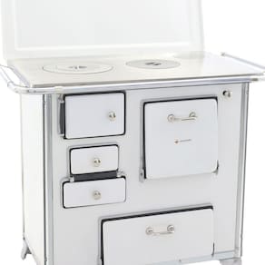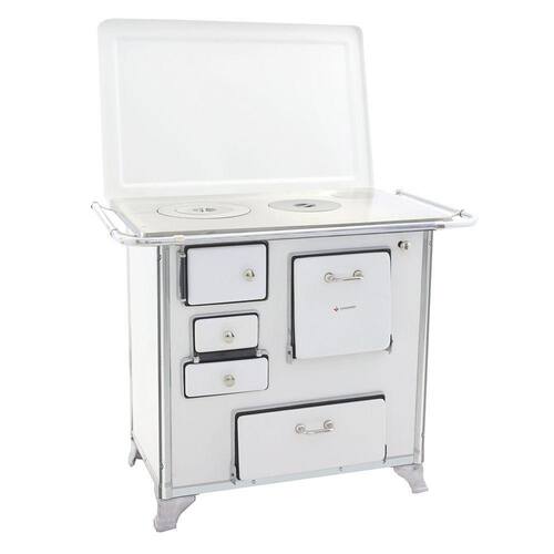 O Fogão a Lenha Número 02 Gabinete modelo Tradicional conta com corpo e forno totalmente em aço carbono com acabamento esmaltado a fogo na pintura Branca. Seus pés são em ferro fundido com pintura em alumínio, contando também com cantoneiras em aço inox e guarnições em ferro fundido cromado garantindo qualidade exclusiva e um ótimo acabamento no seu Fogão a Lenha.
