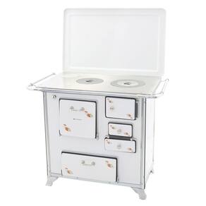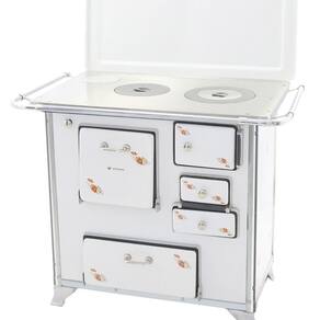 Fogão a Lenha Número 02 Branco Florido com Compartimento para Lenha e Tampa