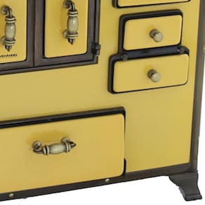 FOGÃO A LENHA VENÂNCIO BARROCO AMARELO GABINETE N03 LADO ESQUERDO COM TAMPA 3BGETAM