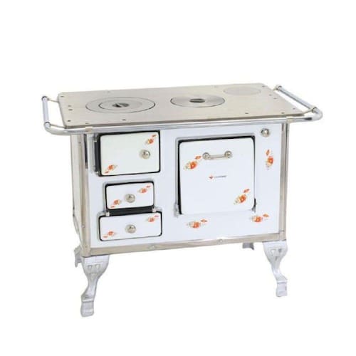 Características: Boca: 2 Saída da chaminé: Direito Tipo da chapa: Ferro fundido e polido Tampa: Não Material do chassi: Aço carbono Varão de proteção: Sim Caldeira: Não Serpentina: Não Gaveta para cinza: Sim Capacidade do forno (L): 28