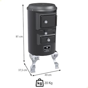 DIMENSÕES - Dimensões do produto (Compr. X Larg. X Alt.): 49 x 37,5 x 81 cm - Diâmetro Chaminé: 11 cm - Dimensões da Chapa (LxP): 30 30 cm