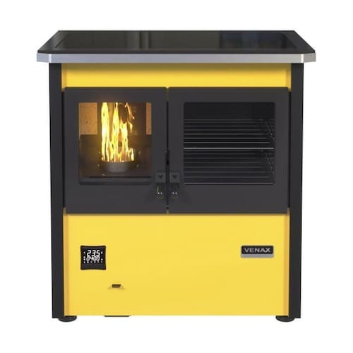Tipo: Fogão a Pellets Chapa: Vidro Vitrocerâmico com moldura pintada Varão de proteção: Frontal de alumínio escovado Suporte do varão de proteção: Aço 3mm pintado em preto Controle de Temperatura: 3 Receitas Pré Reguladas (Baixo, Médio, Alto) Timer: Digital Fornalha: Tijolos refratários pré-moldados Porta da fornalha: Vidro Vitrocerâmico Tranca da porta da fornalha: Sim Porta do ar: Esmaltada Gaveta de cinzas: esmaltada Forno: Sim Porta do forno: Vidro Vitrocerâmico Prateleiras do forno: 2 removíveis Guarnições das portas: Chapa de aço Puxadores: Baquelite na cor preta Pés: 4 pés reguláveis Acessórios: Pé e gancho para manuseio Saída da chaminé: Central traseira Revestimento corpo do produto: Pintura eletrostática Termômetro no forno: Sim